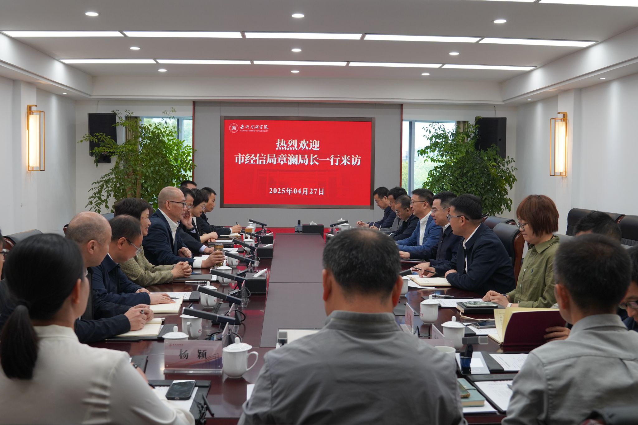 427日上午,嘉兴市经信局局长章澜一行来访交流,校党委书记倪沪平接待章澜一行,校领导赵渊、沈岱峰参加座谈。