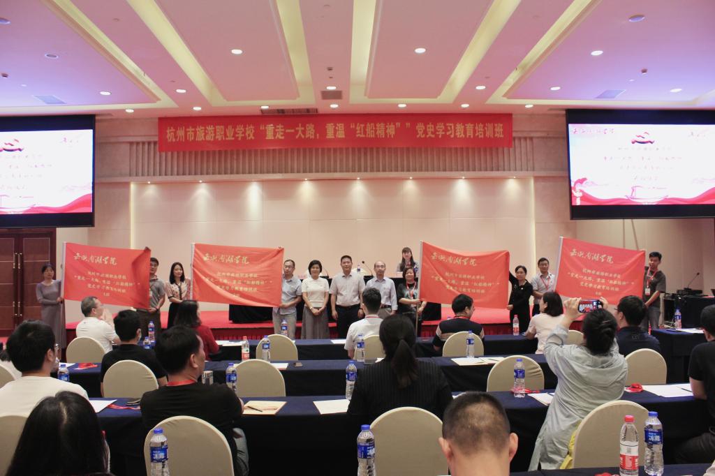 6月4日,杭州市旅游职业学校党员干部一行104人来校参加“重走一大路,重温红船精神”党史学习教育培训班。