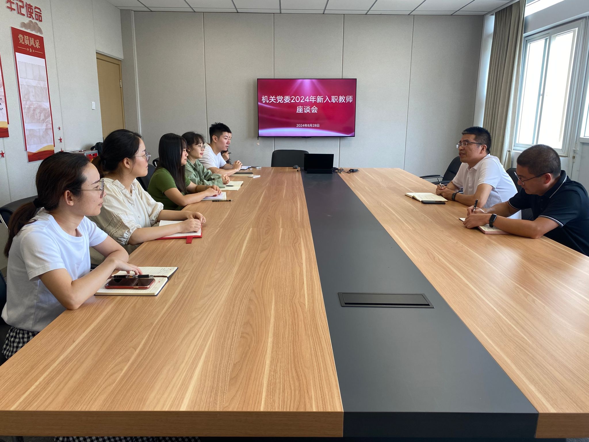 为进一步推进机关新学期“三风”建设,推动“五型”机关建设,帮助新入职教师尽快完成角色转变,更好地适应工作岗位,迅速融入集体,近日机关党委召开2024年新入职教师座谈会。机关党委书记余德将,校纪委副书记、纪检监察室主任、机关纪委书记王海军,机关2024年新入职教师参加座谈。